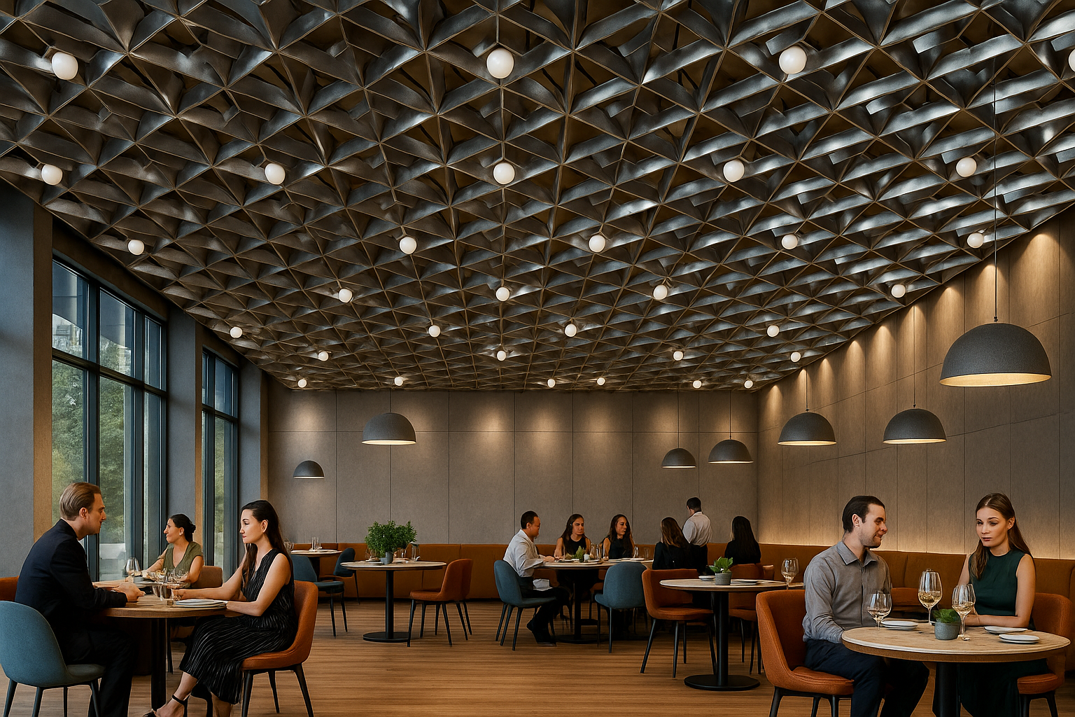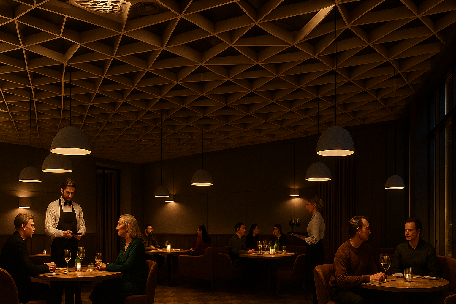 Гости приходят в ресторан не только ради вкусной еды и качественного обслуживания. Они ищут атмосферу — ту самую невидимую составляющую, которая делает место особенным. Именно детали интерьера создают первое впечатление и влияют на то, насколько уютно чувствует себя человек. Потолок играет в этом важнейшую роль, хотя чаще всего остаётся «за кадром» восприятия. Именно он завершает архитектурный образ зала, регулирует восприятие света и звука, формирует настроение и стиль пространства.