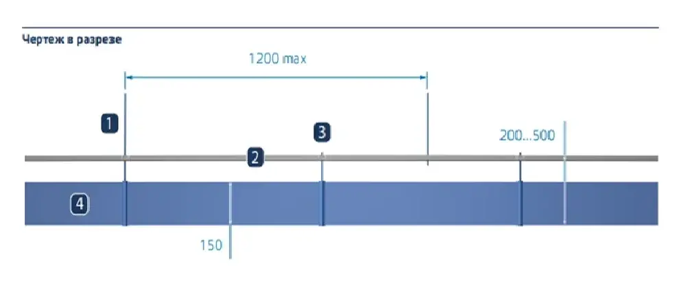 2. Минимальная высота конструкции (подсистема + потолок) — 250 мм