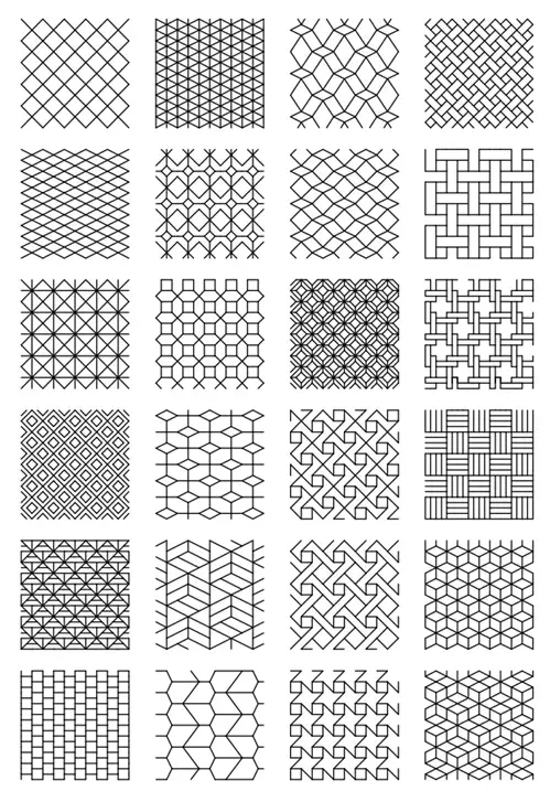 - Геометрические формы: квадраты, ромбы, треугольники, сетки.